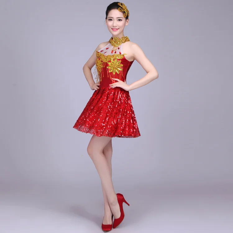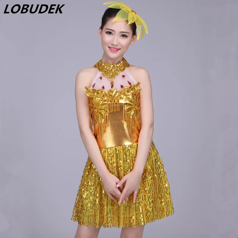 Four colors Sparkly sequins beads sexy Short Dress Prom female dance teams jazz Modern dance Costum