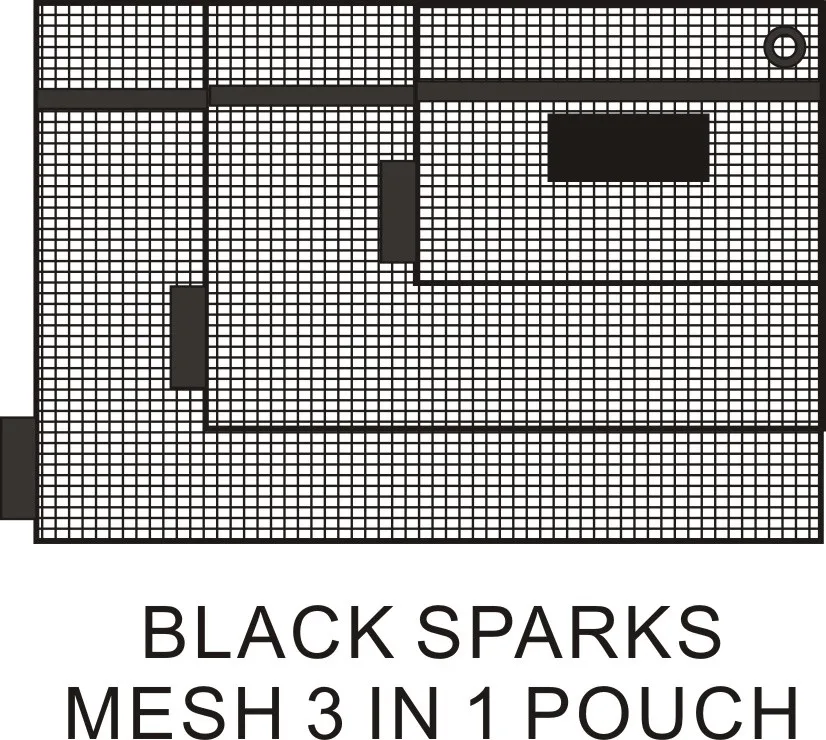 BLACK SPARKS MIM NYLON MESH 3 IN 1 ZIP POUCH