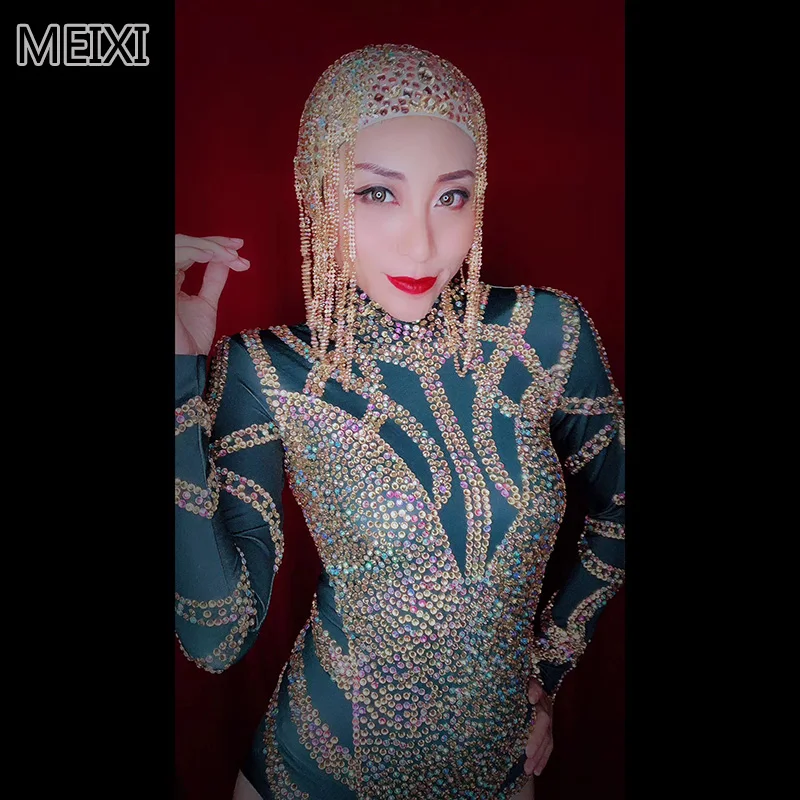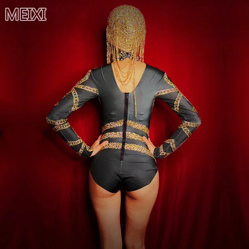 Sparkly skinny black rhinestone jumpsuit luxury bar birthday party concert singer and dancer costum